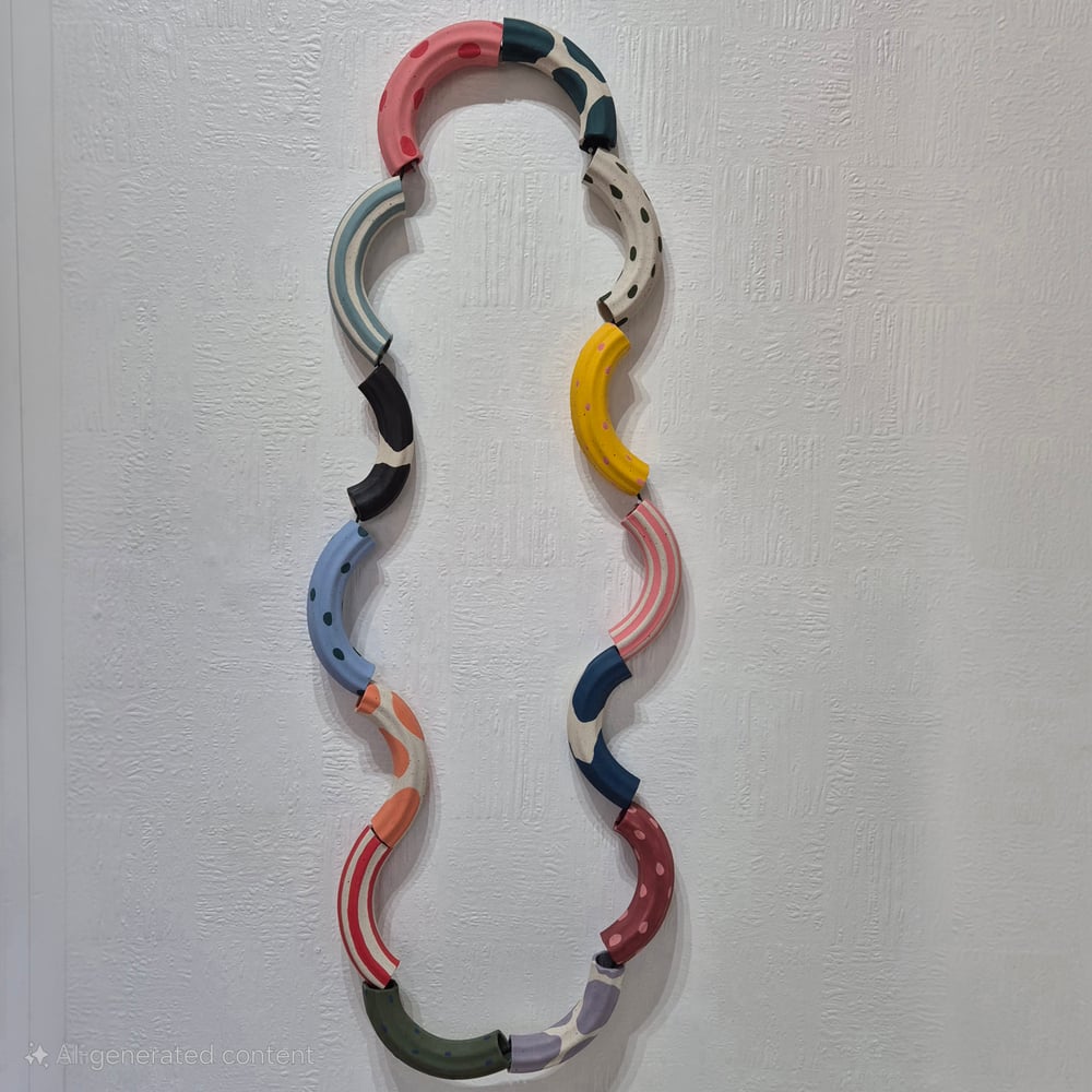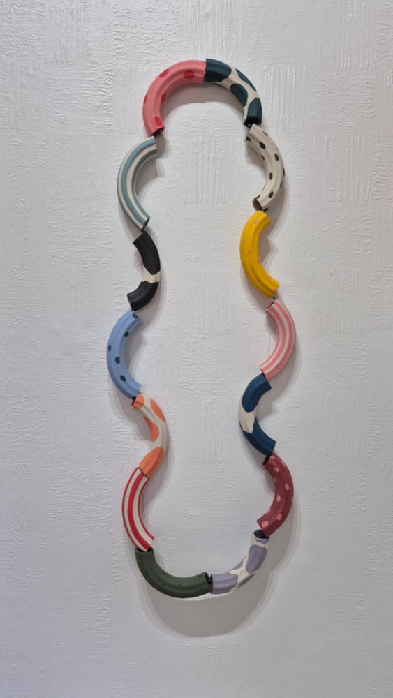 made from extruded stoneware clay formed using a custom made die and painted in matte underglaze. each is arranged by feel and are all different but share similar elements.